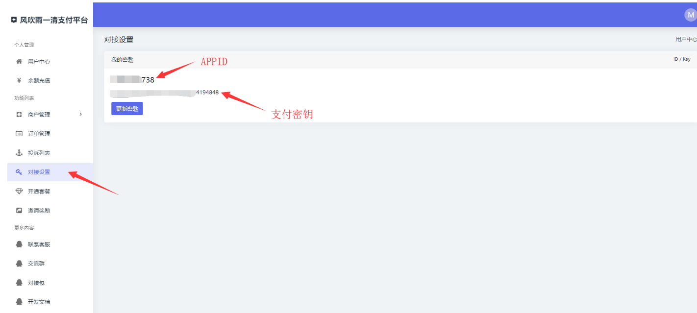 4.申请通过后我们会到一个MCHID对接信息